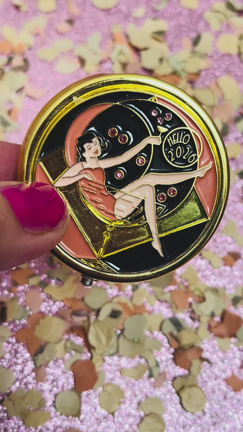 When midnight strikes on the 1st of January 2026 we sincerely hope you will be celebrating the new year with as much glamour, glitz and gaiety as this gorgeous gal...a generous cup o'kindness to one and all! This Art Deco inspired enamel lip balm compact is jewel encrusted and is a strictly limited edition.